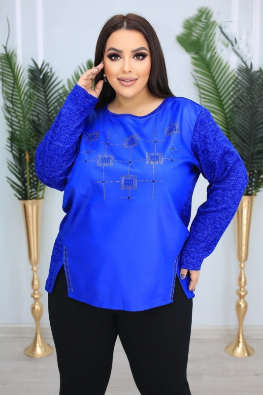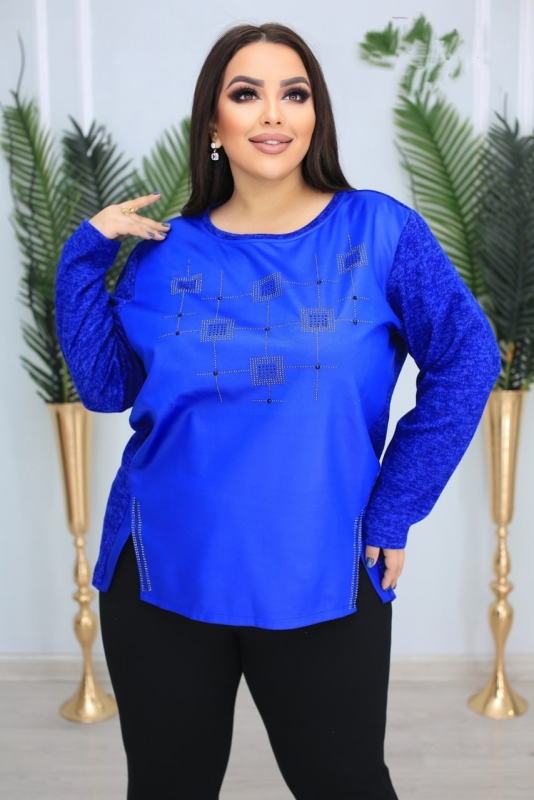 Тепленький и оригинальный блузон выполнен из сочетаний трикотажа по д кожу ( средней плотности, умерено эластичный, гладкий с наружи, внутри как обычный трикотаж) и ангоры меланж( мягонькая, эластичная, не рыхлая).