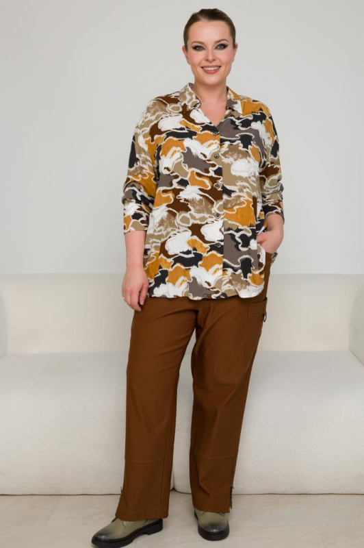 Блуза- рубашка выполнена из 100% вискоза (полированный штапель) высокого качества. Ткань не хлипкая, приятная, не эластичная,.