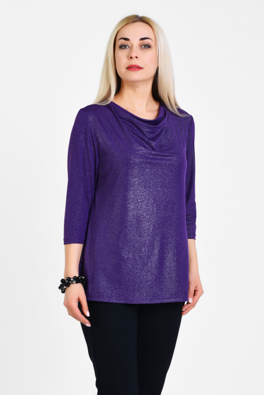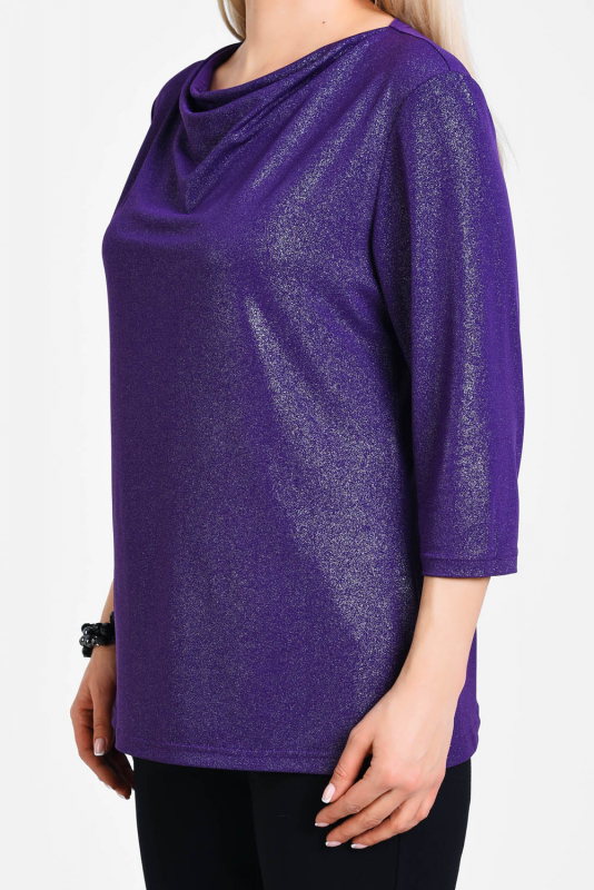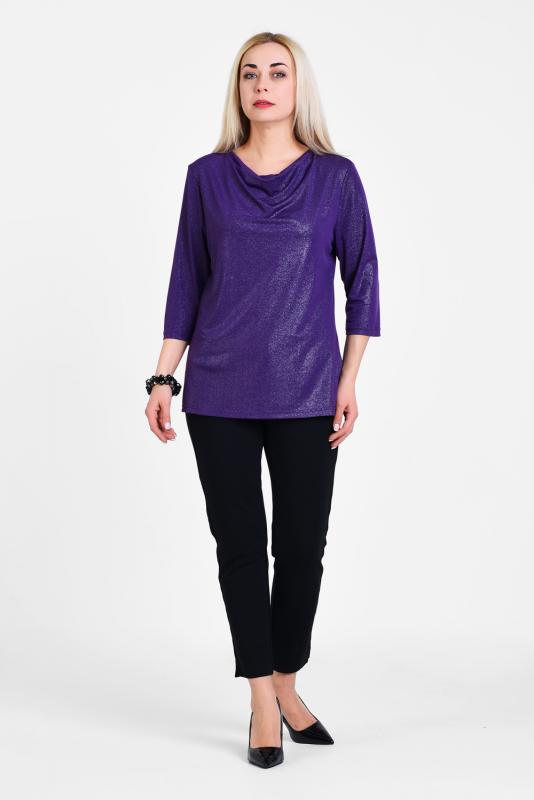 Нарядная блузка для торжественных и праздничных случаев из мерцающего трикотажа, узким рукавом 3/4, подчеркивающим линию запястья. Лаконичная элегантная модель визуально подтягивает фигуру, делает ее стройнее, воротник-каскад – единственная «игривая» деталь блузы, приоткрывает ключицы, подчеркивает линию шеи.