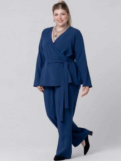 Эффектная блузка прямого силуэта выполнена из гладкокрашеной ткани с высоким содержанием натурального волокна. Модель с V-образным вырезом горловины, переходящим в «запах». На уровне талии закреплены части широкого пояса, которым фиксируется блуза на фигуре. Рукав длинный, прямого кроя, что позволяет носить его «на отворот». Модель прекрасно комплектуется с широкими брюками. Такой костюм выглядит очень элегантным и выгодно подчеркнет женский силуэт. Секрет заключается в идеальных лекалах и интересных деталях, которые не оставят Вас равнодушными.