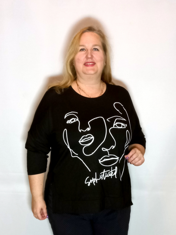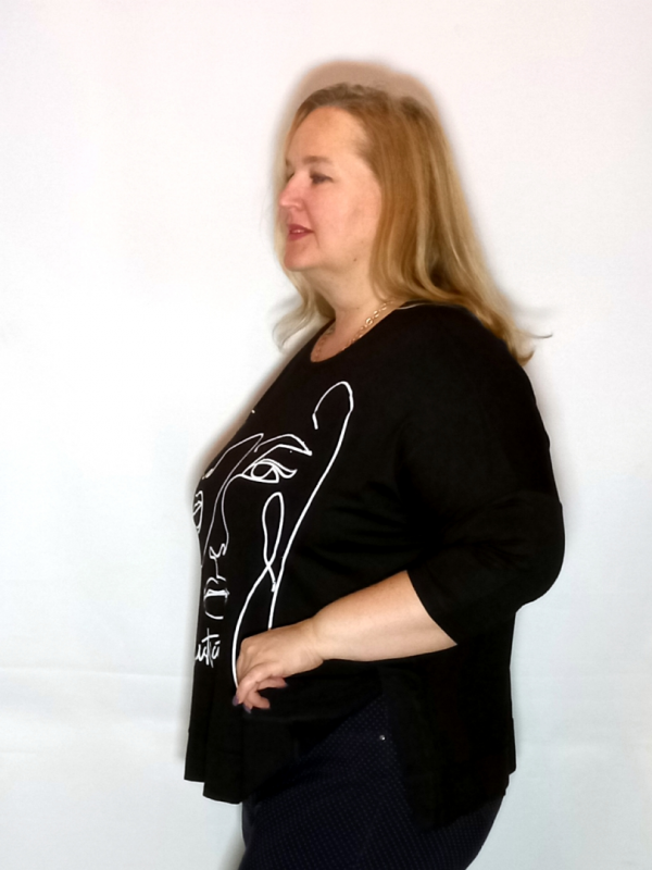 Стильный блузон с модным принтом "Пикассо" выполнен из высококачественного трикотажного полотна с 95% содержанием Вискозы.