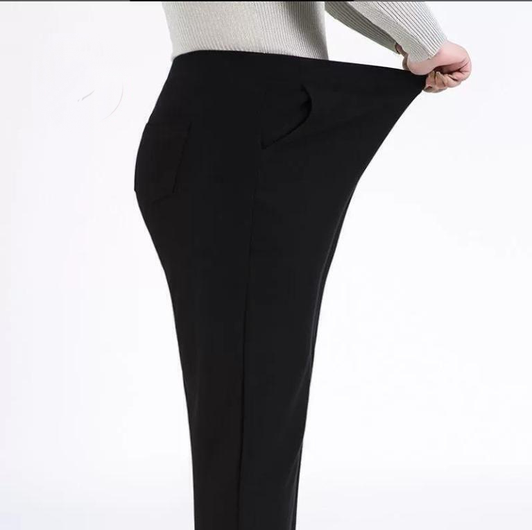 Брюки выполнены из плотного трикотажа. Снаружи гладкий, внутри начес. Трикотаж очень эластичный, имеет небольшой утягивающий эффект