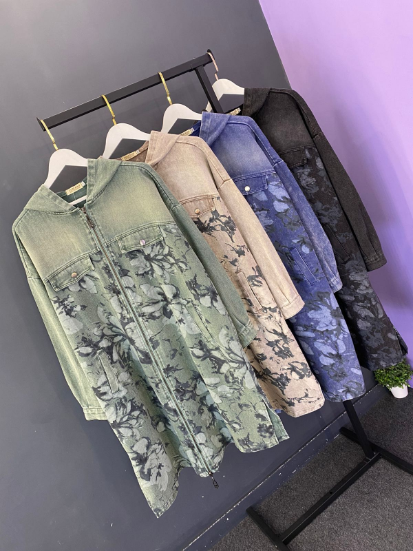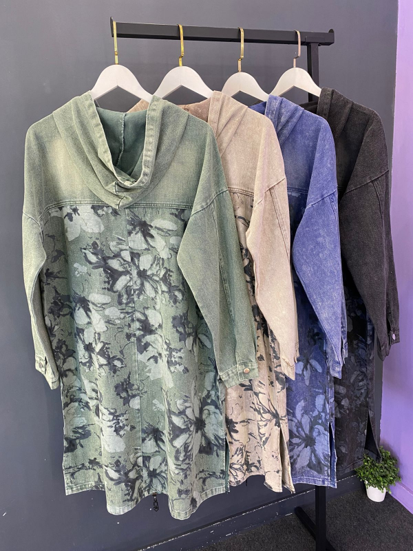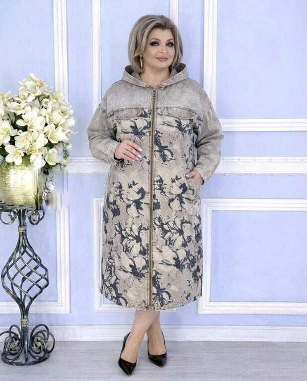 Кардиган выполнен из классической джинсовой ткани. СРедняя плотность, приятная, пластичная. В данной модели сочетаются ткани компаньоны- однотон и принтованная.
