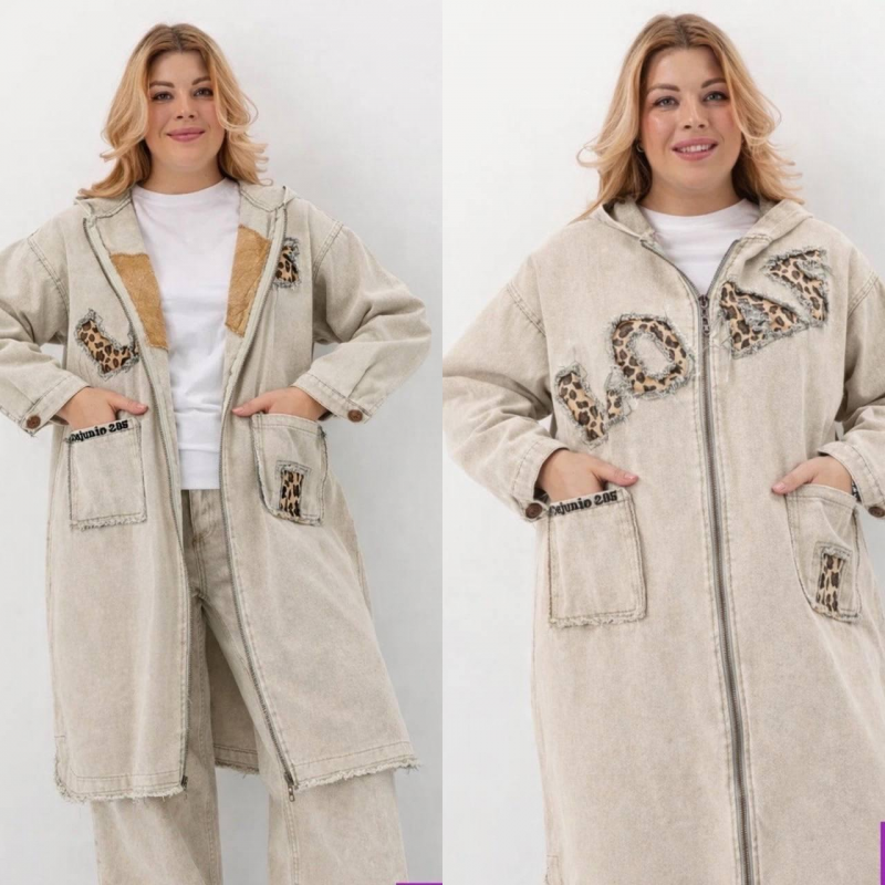 Шикарнейший кардиган выполнен из плотной джинсы , колом не стоит, дышит, пластичная .