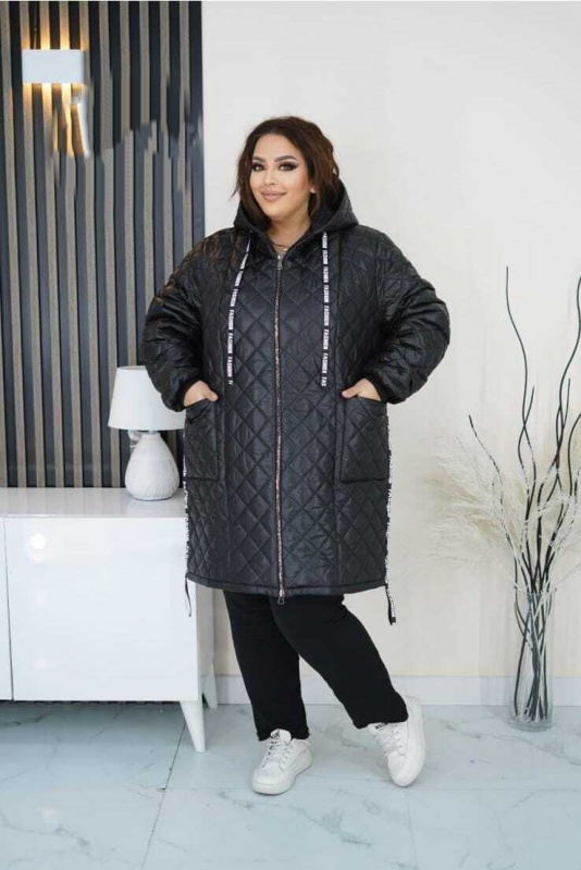 Стильная, удлиненная демисезонная куртка выполнена из курточной стежки. Слежка шуршит, утеплитель синтепон.
