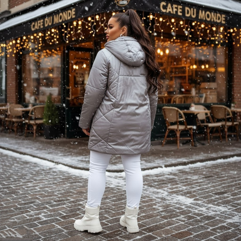 Стильная, теплая, но при этом не тяжелая, зимняя куртка выполнена из плащевой ткани с  неброским металлическим оттенком. Утеплитель верблюжья шерсть.