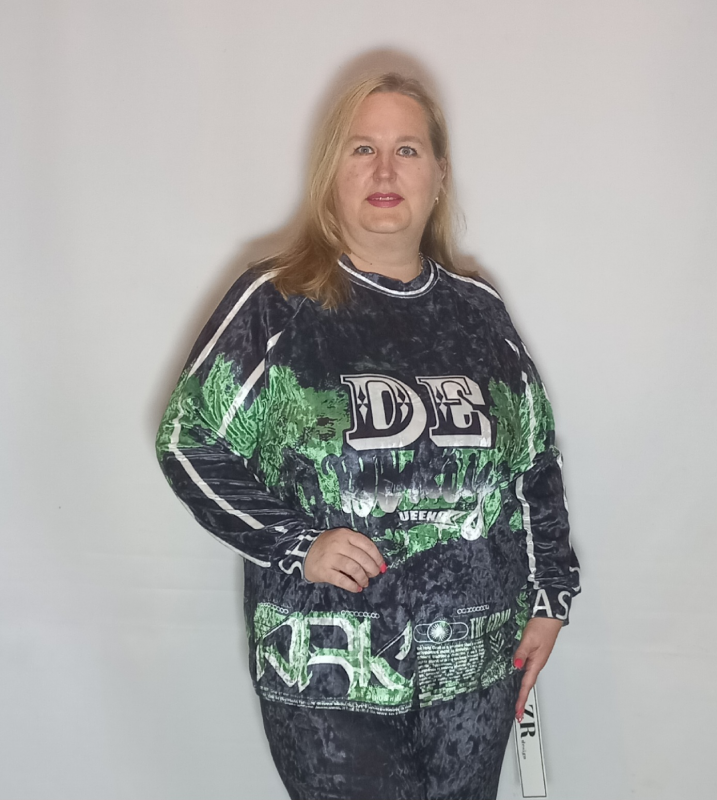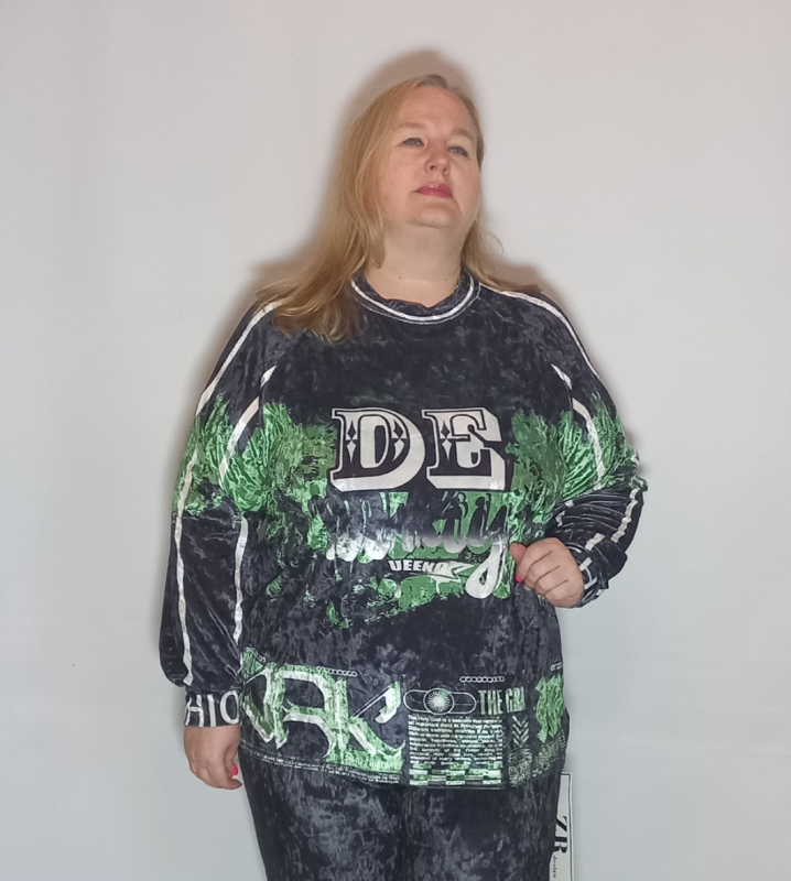 Шикарная туника- футболка выполнена из мягкого, очень эластичного мраморного велюра с рисунком.