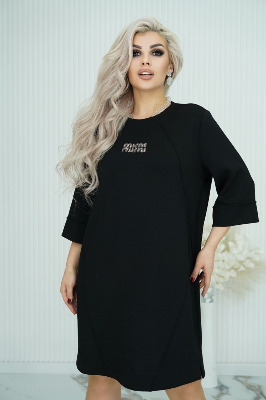 Лаконичное, но элегантное платье туника выполнено из плотного трикотажа. Трикотаж очень приятный наощупь, плотненький, хорошо скрывает шероховатости фигуры, эластичный.