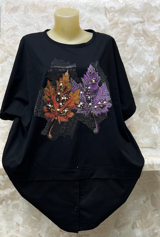 ШИкарная туника их футболочного, хлопкового трикотажа ( 95% хлопок, 5% спандекс) с эффектом двухслойности.