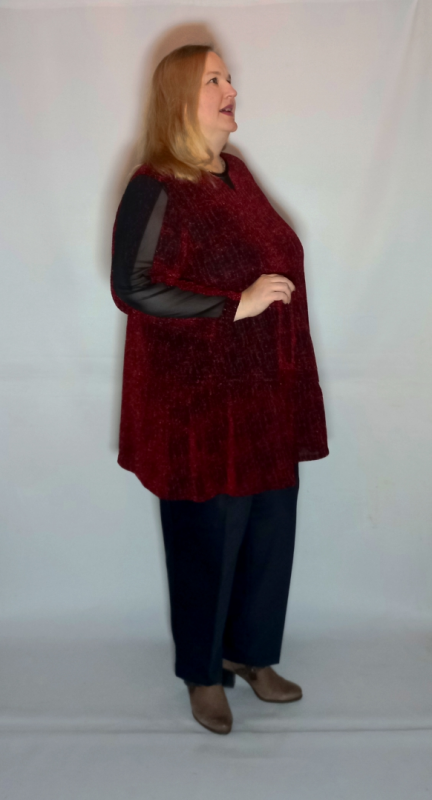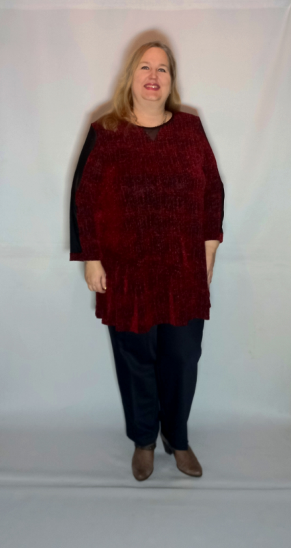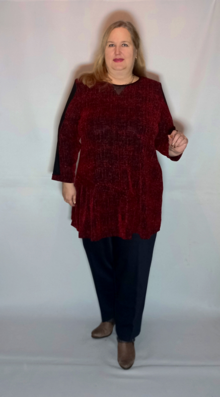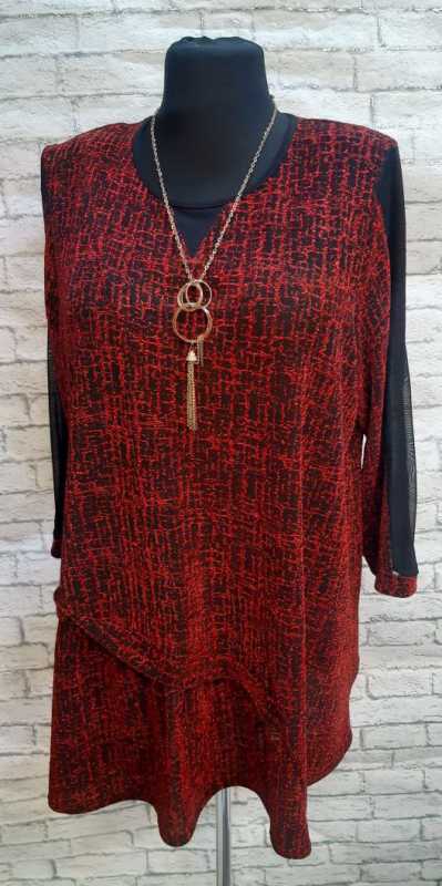 Туника выполнена из фактурного трикотажа. Трикотаж средней плотности, мягкий, приятный, эластичный.