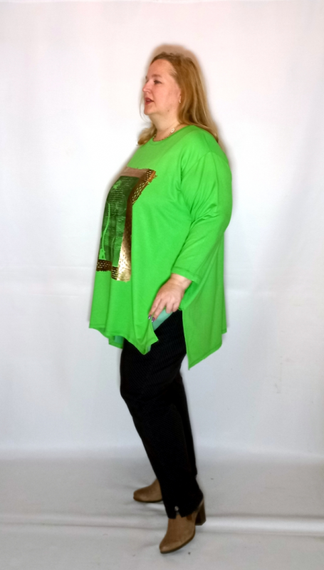 Удлиненная туника А-силуэта выполнена из высококачественного, трикотажного полотна с 95% содержанием вискозы.