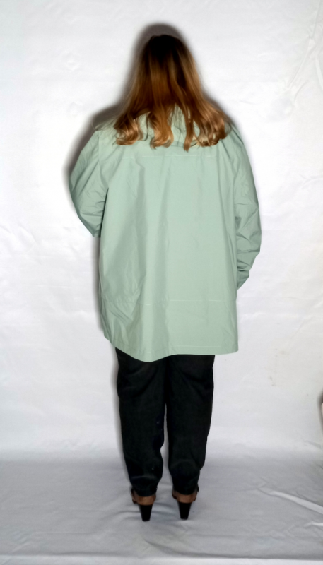 Рукав длинный втачной, есть пата, застегивающаяся на кнопку, ей Вы можете регулировать длину рукава, а так же использовать как декор.