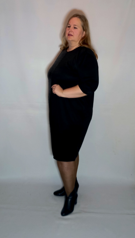 Рукав 3/4 , втачной. С одной стороны из трикотажа, с другой из сетки с пайетками
