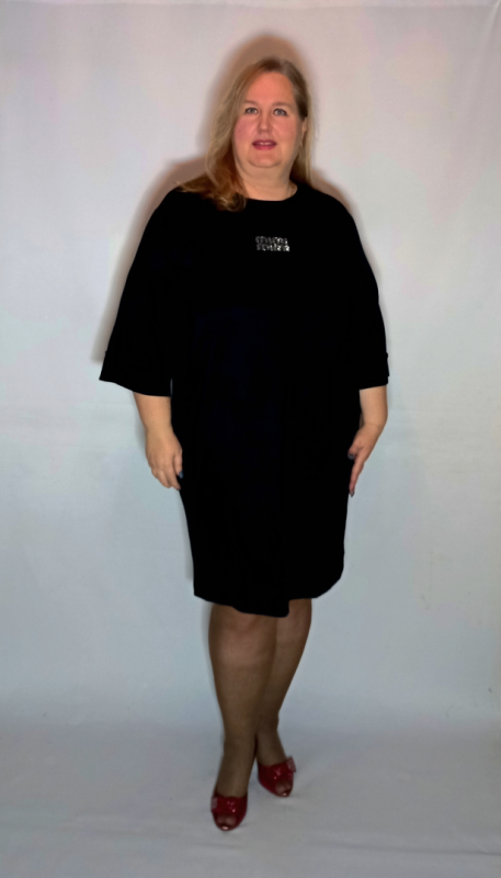 Лаконичное, но элегантное платье туника выполнено из плотного трикотажа. Трикотаж очень приятный наощупь, плотненький, хорошо скрывает шероховатости фигуры, эластичный.