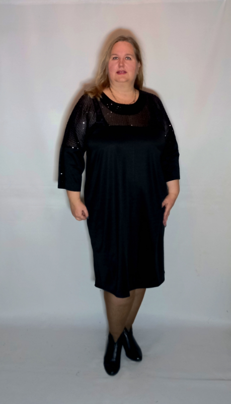 Рукав 3/4,спущенное плечо, по верхней поверхности "лампас" из сетки с пайетками