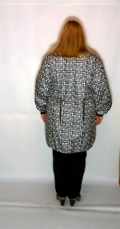 А так же на талии сзади в боковые швы вшита кулиска. Ей Вы можете регулировать ширину плащика по талии